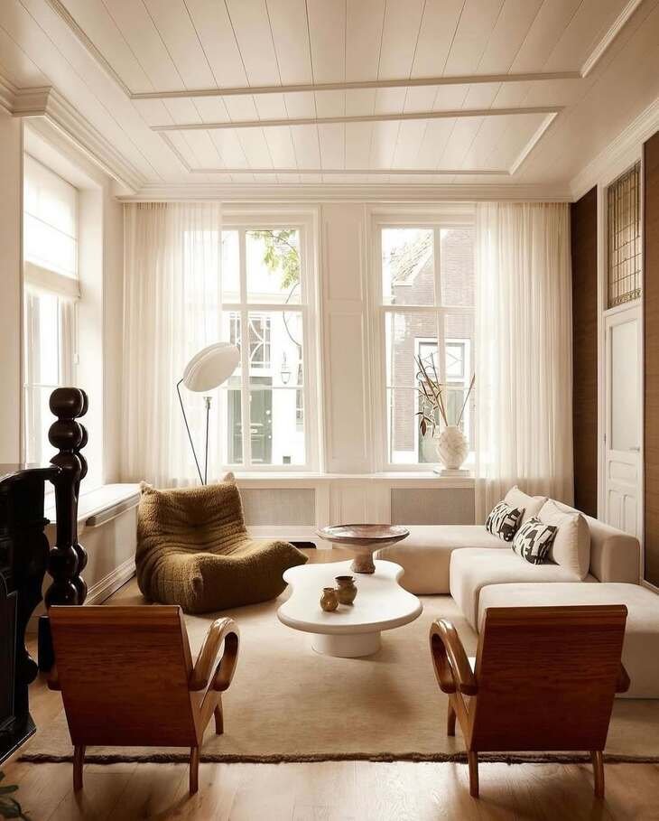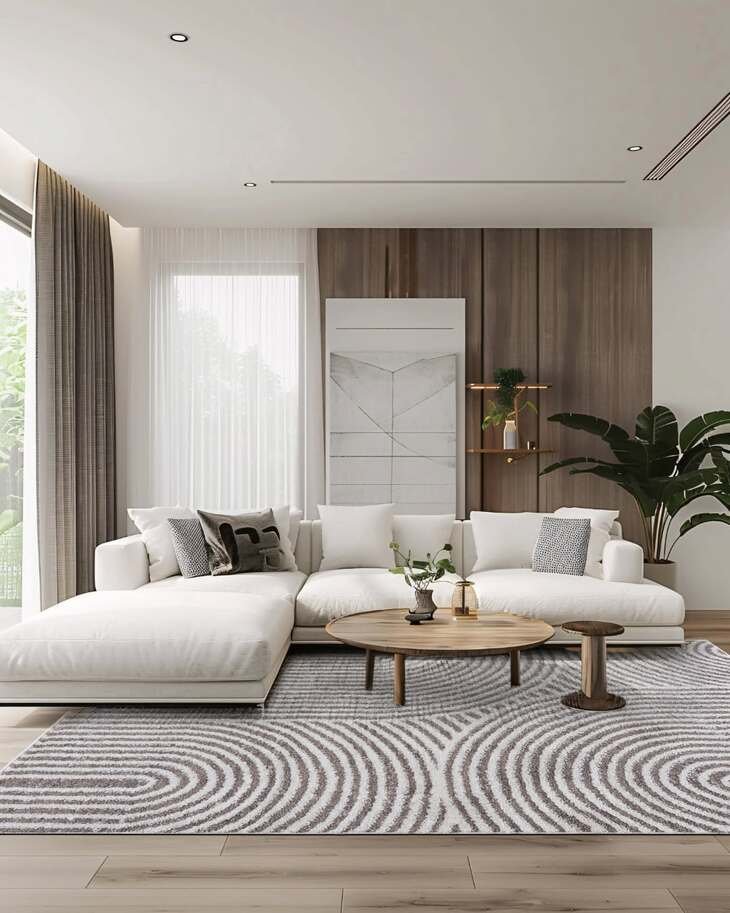 Plus, pairing natural wood elements with white or neutral tones always creates this relaxed, earthy atmosphere. You could incorporate wooden coffee tables, side tables, or even a statement wood bookshelf, all of which add warmth without overpowering the space. It’s all about creating a harmonious feel, where the light and the materials work together to make the room feel grounded, yet calm.