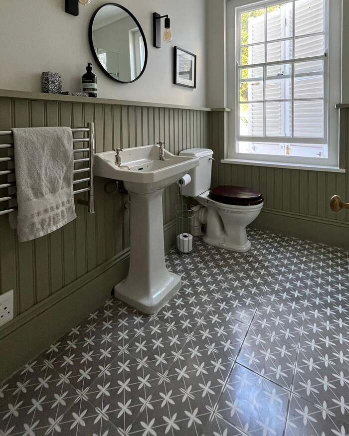 It’s one of those bathroom flooring ideas that proves you can be practical and pretty at the same time.
