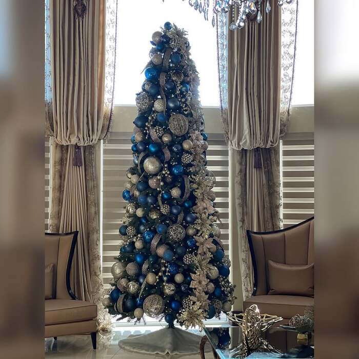 Blue feels calm and grounded. Silver reflects light and adds frost. Together they give winter vibes without shouting. Most rooms already have something that matches, like denim, gray sofas, or stainless steel. That’s why blue and silver Christmas tree ideas keep trending on Instagram and honestly, why my saved folder keeps growing.