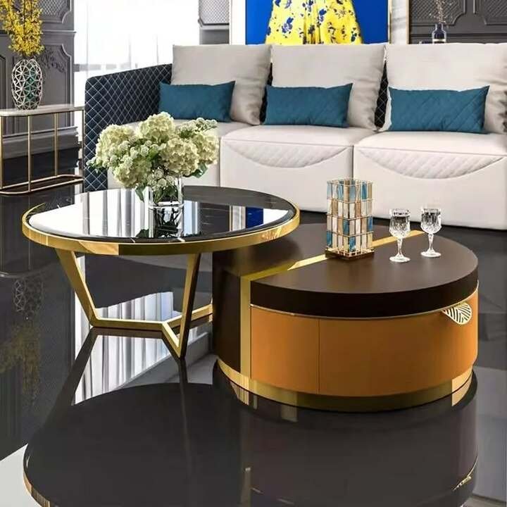 If your style leans bold, a luxury living room center table like this teaches a good rule. Keep the shapes simple when the colors are loud. Circles and half-moons are easy for the eye, so the bright gold and mustard never feel too much. Add neutral seating around it, then one big piece of art with a similar color, just like in the picture. Suddenly the whole room feels curated on purpose.