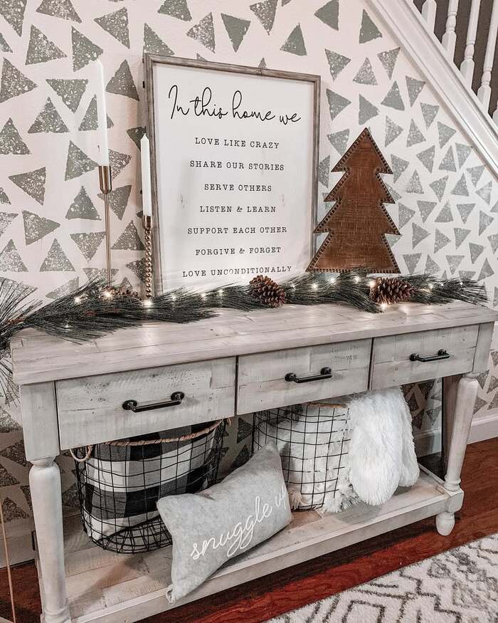 Christmas Entryway Table Decor tatement wall with quote art and soft lights
