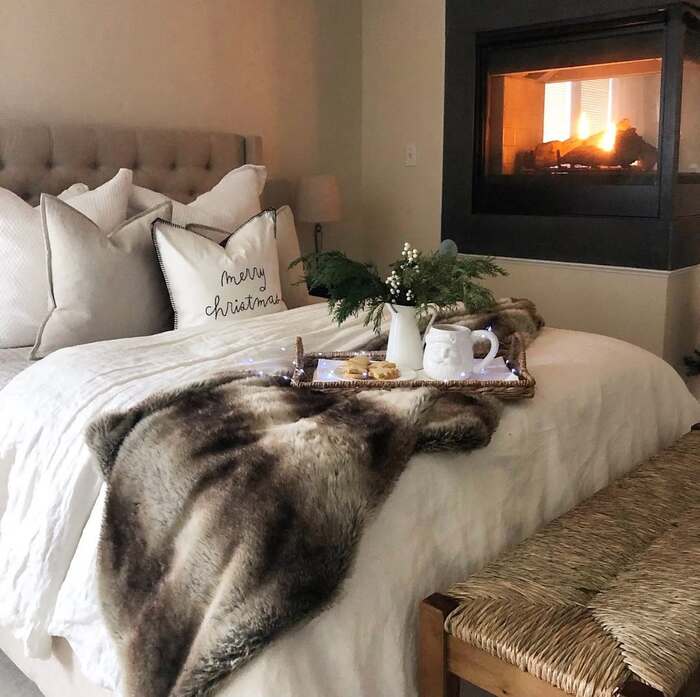 Fireside minimal with faux fur and tray of treats
