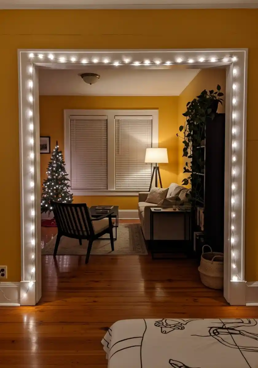 Framing a doorway with christmas lights living room. It costs little and makes the whole space feel like a holiday portal.