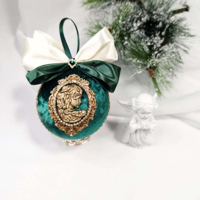 Want to make a version at home? Glue a small resin cameo onto a velvet-covered ball, then edge it with tiny beads. Add a satin bow in cream. Mix these with glass drops and gold leaves for an old-world vibe. When you’re planning christmas tree decorations, decide your crown jewels before anything else. It’s easier to build around them than wedge them in later. This style plays beautifully with candlelight and low music and maybe a tray of shortbread on the table.