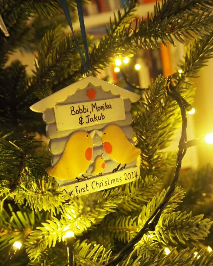 The little birdhouse ornament with names and “Our First Christmas” got me sappy. Keepsakes like this turn a tree into a timeline. They also solve the gift problem for new couples, roommates, or new parents. I like to stage memory ornaments slightly away from the very front, so people discover them and smile. It feels like finding a note in a coat pocket.