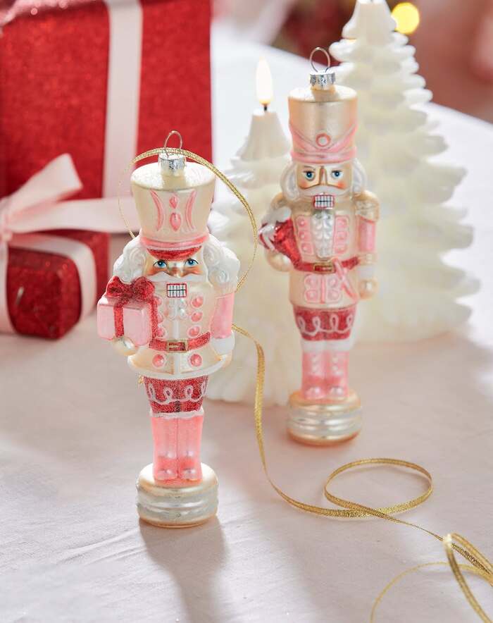 Okay, these pink nutcracker ornaments are a mood, and my inner eight year old is clapping. When I first tried them I worried the faces would look too stern. But the blush coats, glitter boots, and tiny gifts make them more charming than bossy. I cluster a pair at kid height so little eyes can meet them, then hang a third slightly higher like a captain. Build the story around them. Add candy cane picks, red berry sprays, and striped ribbon tails. Use warm white lights to keep skin tones cozy. Rose gold balls and matte cream bulbs tie the soldiers to the rest of your Christmas tree decor without turning everything bubblegum. If you have a cocoa bar, place a single nutcracker on the shelf so the theme travels.