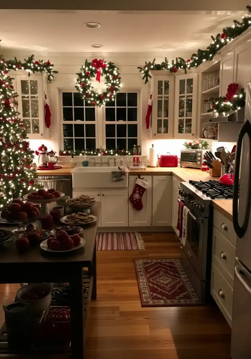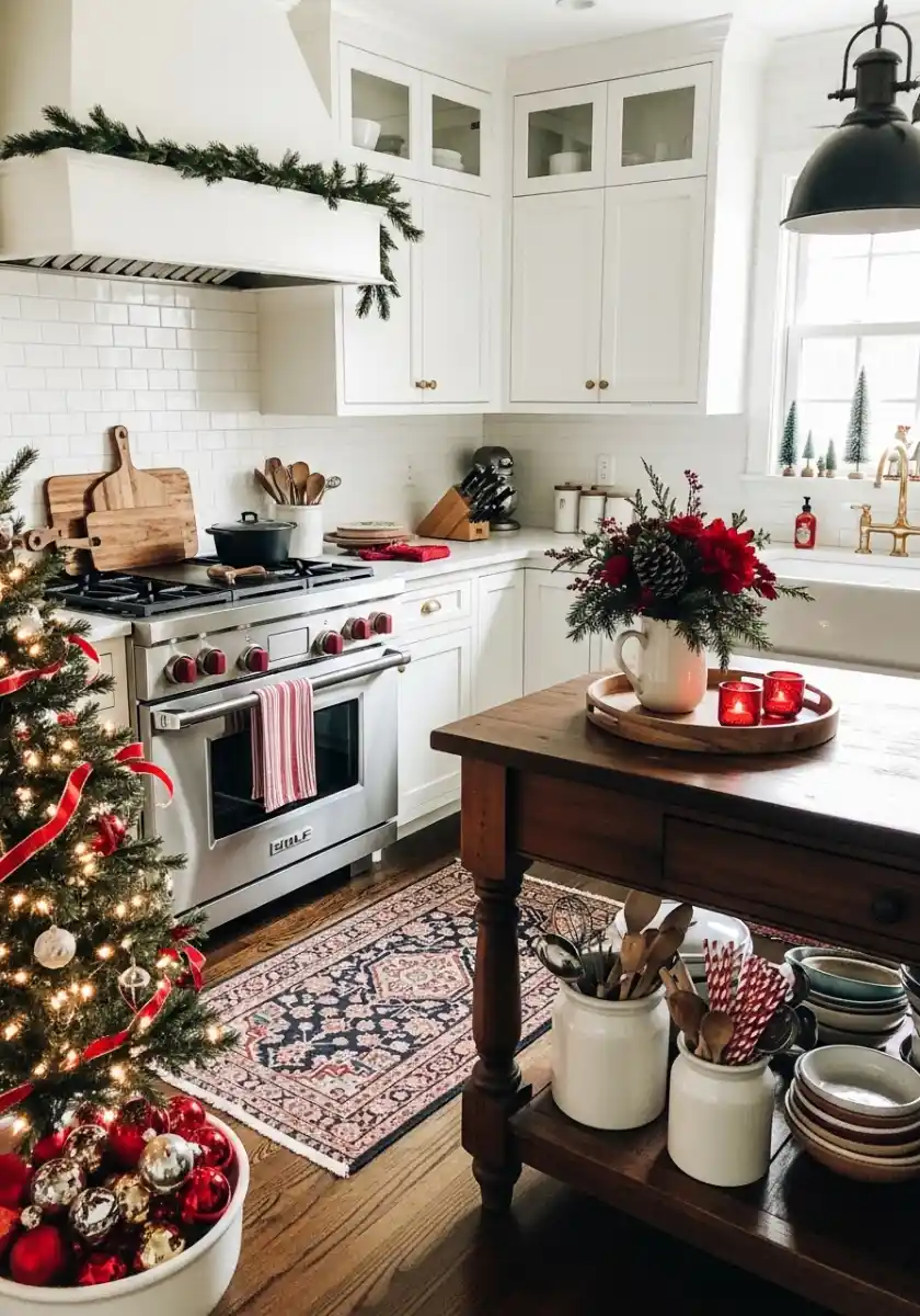 Yes. Repeat colors in towels, mixers, or mugs so your Christmas trees in the kitchen feel like part of the room.