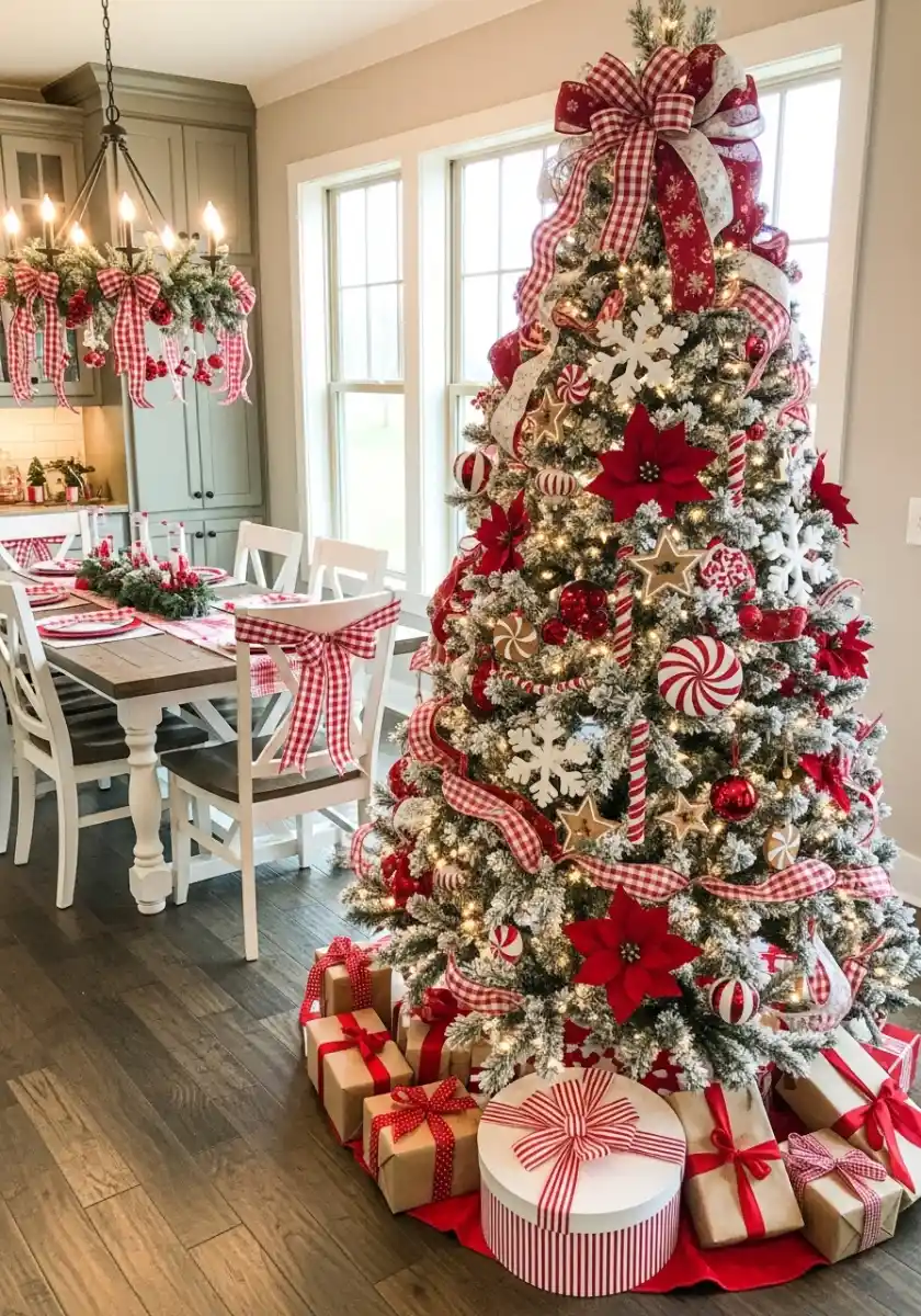 Gingham and peppermint mega tree by the dining nook