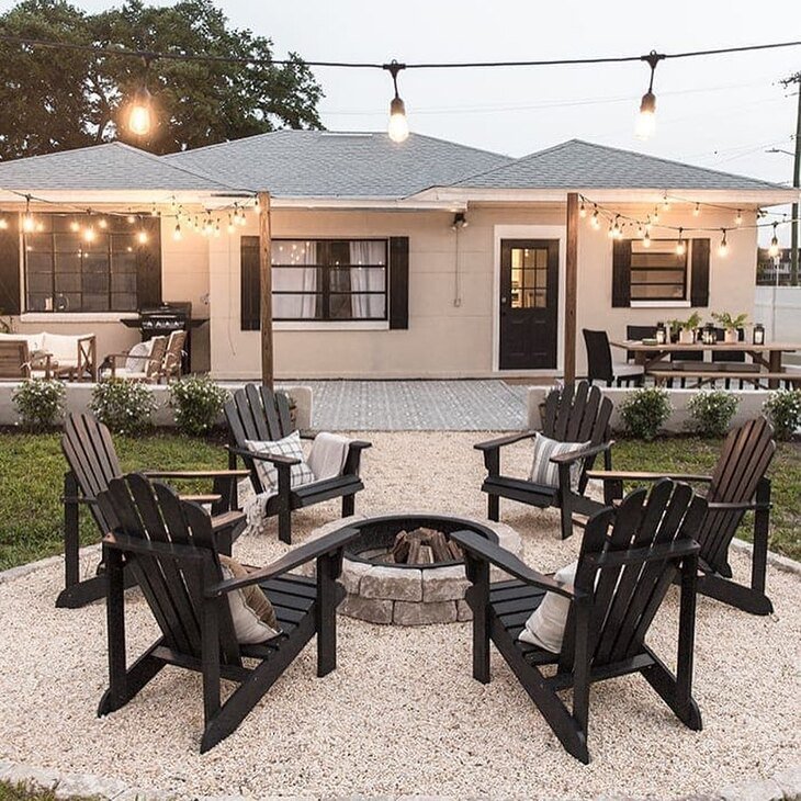This design idea works best with clean, symmetrical lines and minimal distractions. Add some potted plants or sculptures to complement the modern vibe of the patio without overwhelming it. Another idea to elevate this style is to incorporate a fire pit or a water feature right in the center. The firepit, surrounded by concrete seating, would be a great addition to evening gatherings or intimate get-togethers.