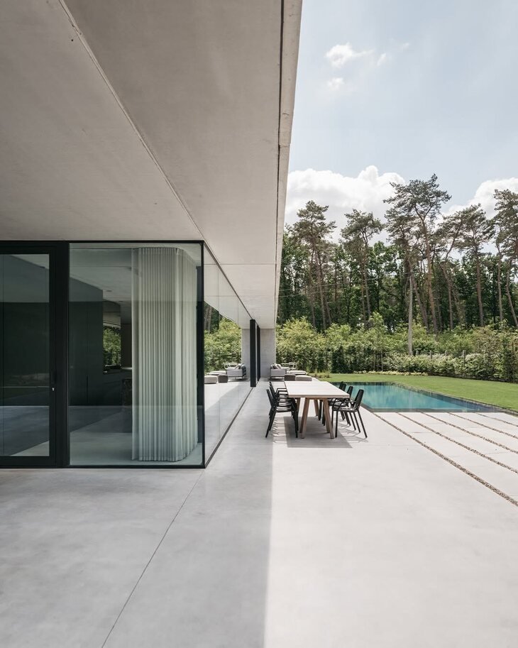 What I love about this concrete patio idea is the way it seamlessly blends with the house's minimalist aesthetics. The simple concrete slabs are bold enough to stand on their own but leave room for the surrounding elements—like the sleek, modern furniture and vibrant greenery—to shine. Adding decorative plants, like low-maintenance shrubs or even a few seasonal flowers, can make all the difference. Plus, it keeps the space inviting without being too cluttered.