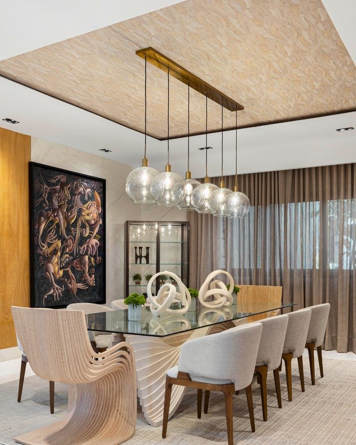 The unique dining chairs, with their sculptural form, are a true standout. They look like they belong in a high-end gallery, but they also manage to be incredibly inviting and comfortable. If you love the idea of turning your dining room into a piece of art itself, this design is the perfect inspiration.