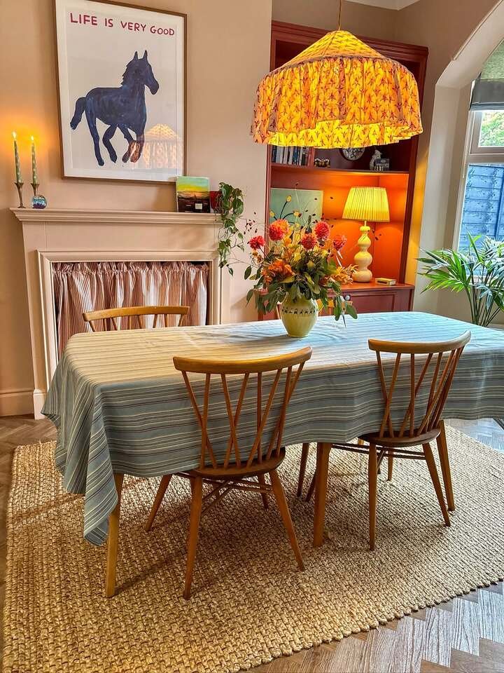 If you want to try this without panicking, start small. Add bright pillows, a colorful pendant, or even a painted mirror frame. Then keep the table and walls calm. And if you mess up, it’s okay, I’ve done that too. Paint exists for a reason.