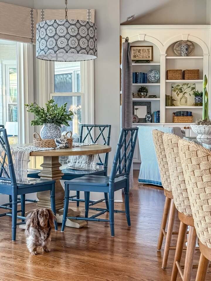 Coastal blue chairs and built-ins for dining room decor modern classy