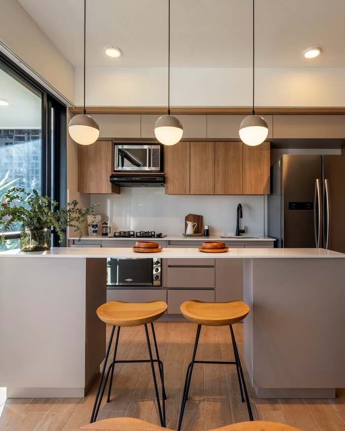 I also like how bar stools slide in clean. That’s the big win. If you pick stools with no arms or slim arms, you can tuck them in and keep walkways open. Add two pendant lights above and suddenly it looks intentional, not like you’re eating beside the sink because you’re out of options.