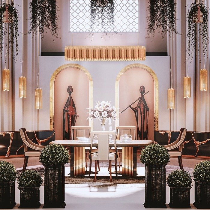 dining room wall decor ideas elegant using arched niches, gold glow, and symmetry