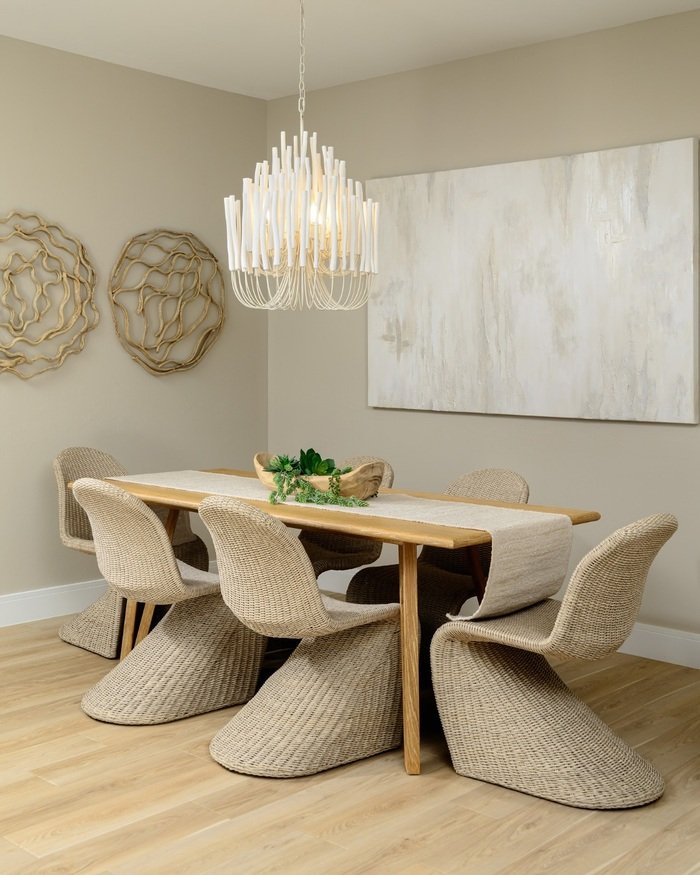 What’s the best lighting to pair with modern wall decor for dining room spaces?