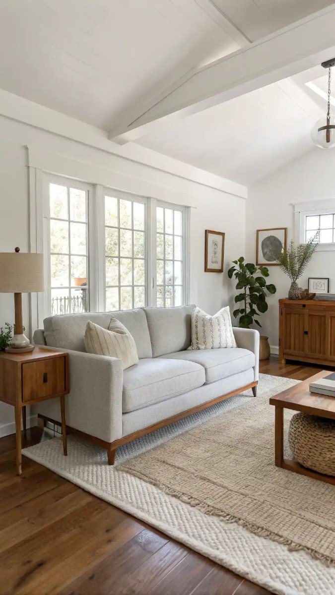 From what I've observed, selecting the right palette for your grey sofa living room ideas colour schemes is essential for creating a cohesive and inviting space. Here, the warm wood tones and soft neutrals beautifully complement the sofa, preventing the grey from feeling stark or cold.