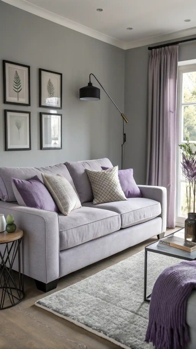 Here, the pairing with muted lavender accents, from cushions to curtains, creates a remarkably calm and inviting atmosphere. It's a prime example of how specific grey sofa living room ideas colour schemes can really elevate a space, making it feel both chic and comfortable. I've found that these subtle purple hues add just enough personality without overwhelming the grey's natural elegance.