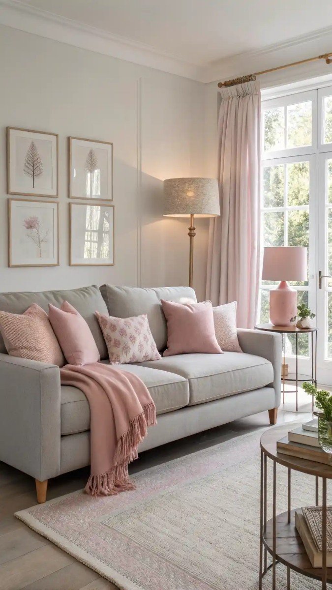 Pretty in Pink: Blush Tones with a Grey Sofa