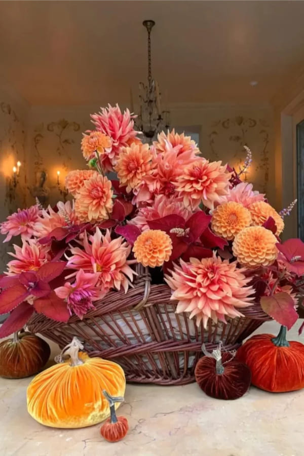Big Dahlia Basket With Velvet Pumpkins