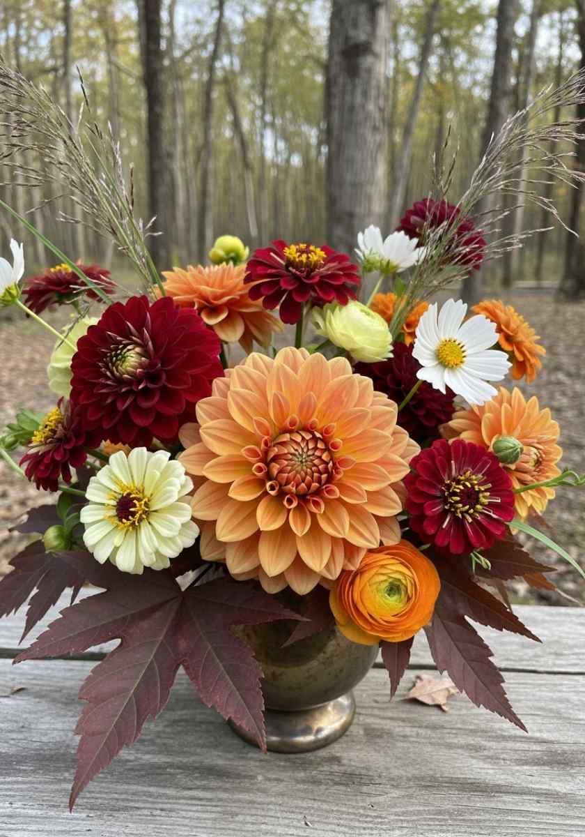 What colors pair best for autumn flower arrangements?
