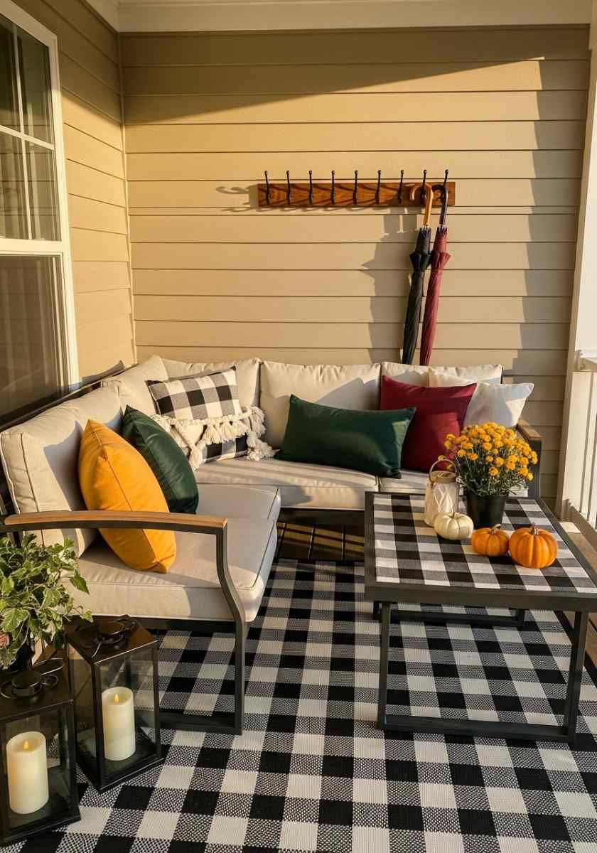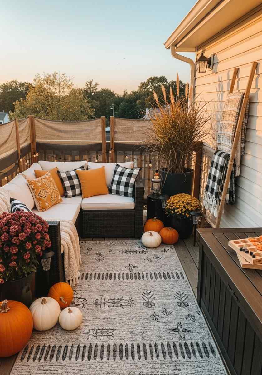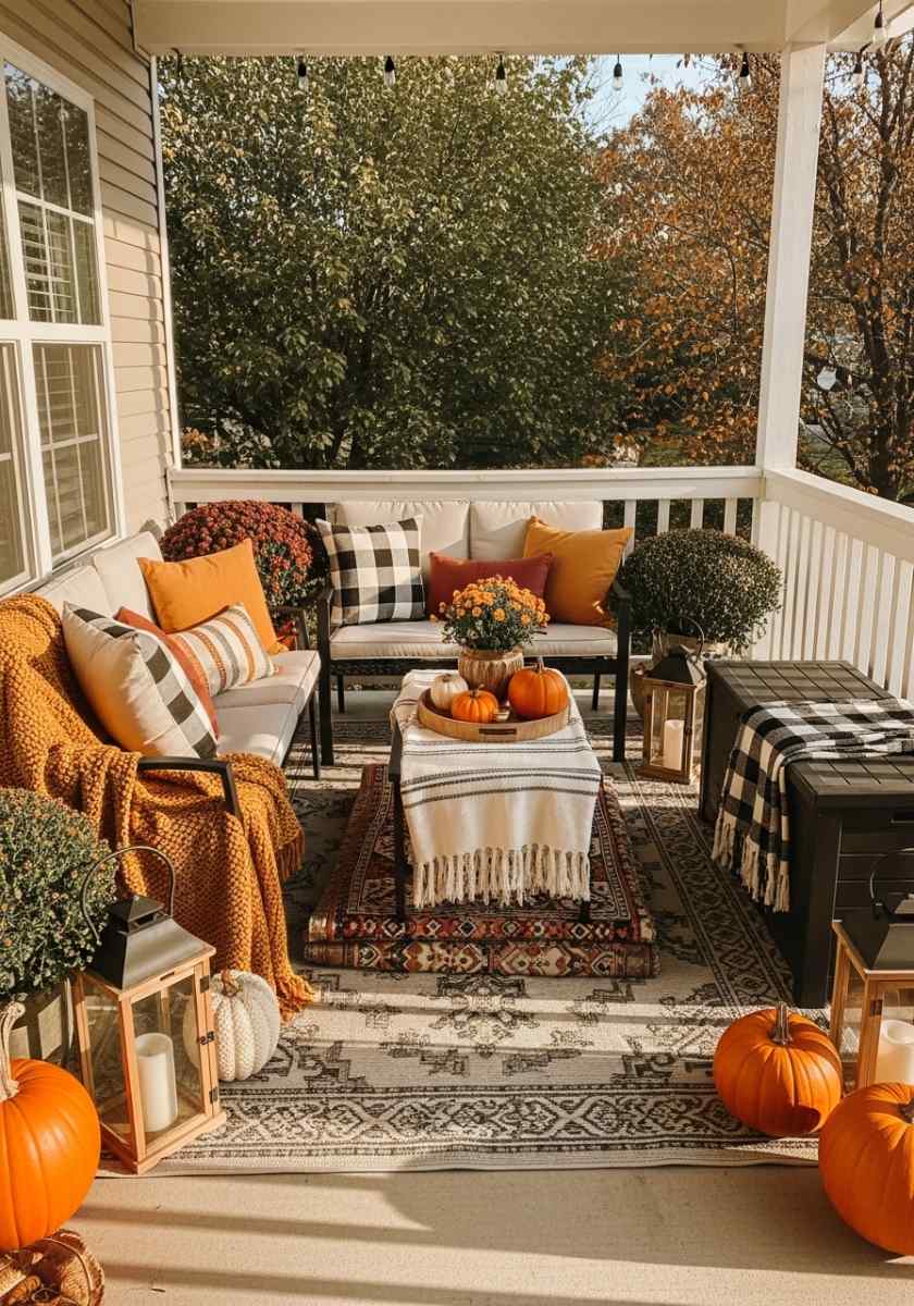 Fall Patio Decor for 120 Sq Ft: Layered Rugs & Lantern Glow