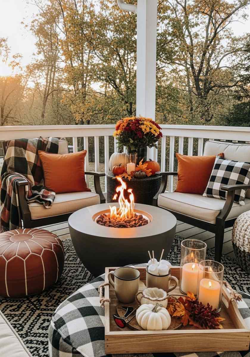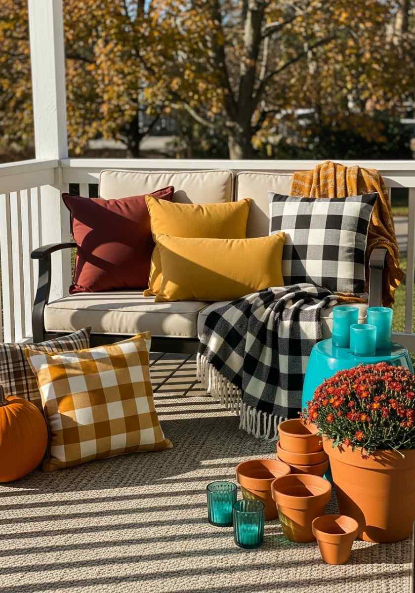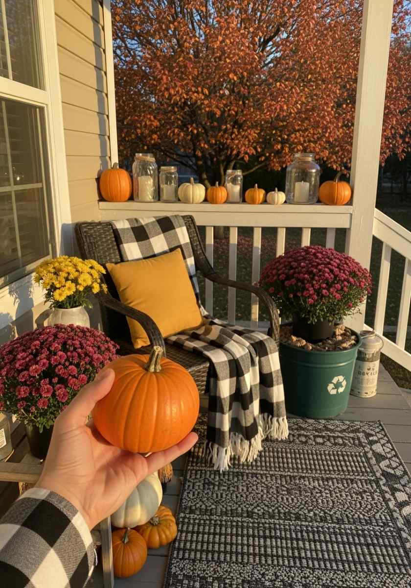 Pro tip: Add layers—blankets, pillows, candles, and plants like mums or lavender. If you’ve got neutral furniture, throw in warm tones like orange or gold to pop against the background.