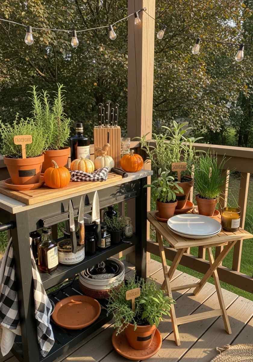 If you grill well into November, bring herbs close. Pot rosemary, thyme, sage, and chives by a small prep cart. Mount a magnetic knife strip under a shelf for quick chops.