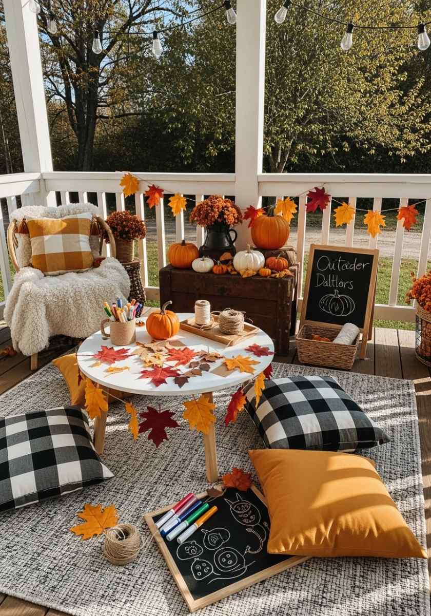 Kid-Friendly Fall Patio with Craft Station