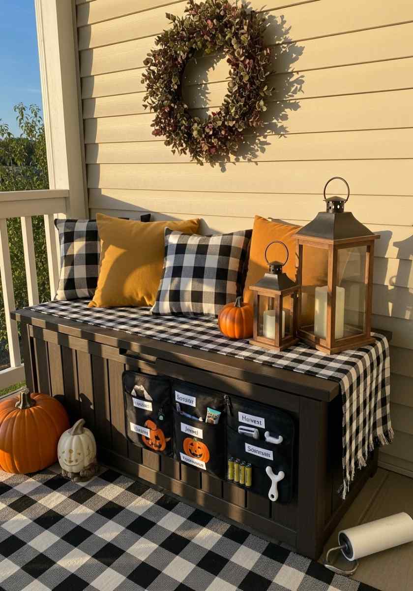 Make a kit so refreshes don’t steal your whole Saturday. Stock a storage bench with two cushion palettes (neutral and jewel), a versatile wreath, lanterns with rechargeable candles, and a go-to runner. Use labeled zipper pouches for Halloween vs. harvest accents. Toss in command hooks, spare batteries, a lighter, and a lint roller. Print a 15-minute setup checklist and tape it inside the bench lid. Your fall patio decor now shifts fast from weekday calm to weekend party.