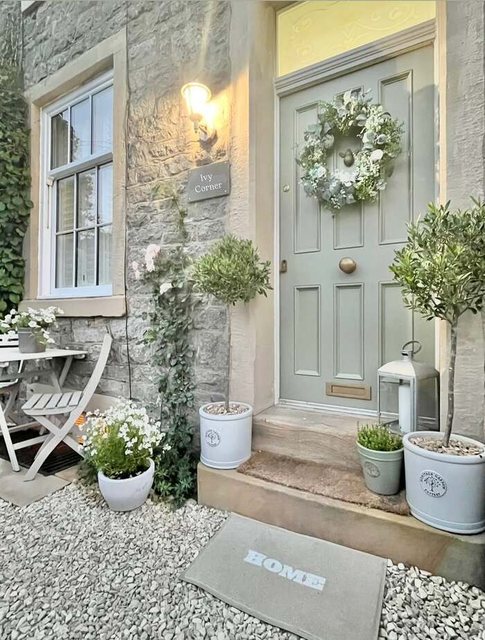 Place the doormat centered to the door, then mirror planters by using the mat edges as guides. Step back, snap a photo, adjust by inches, not feet.