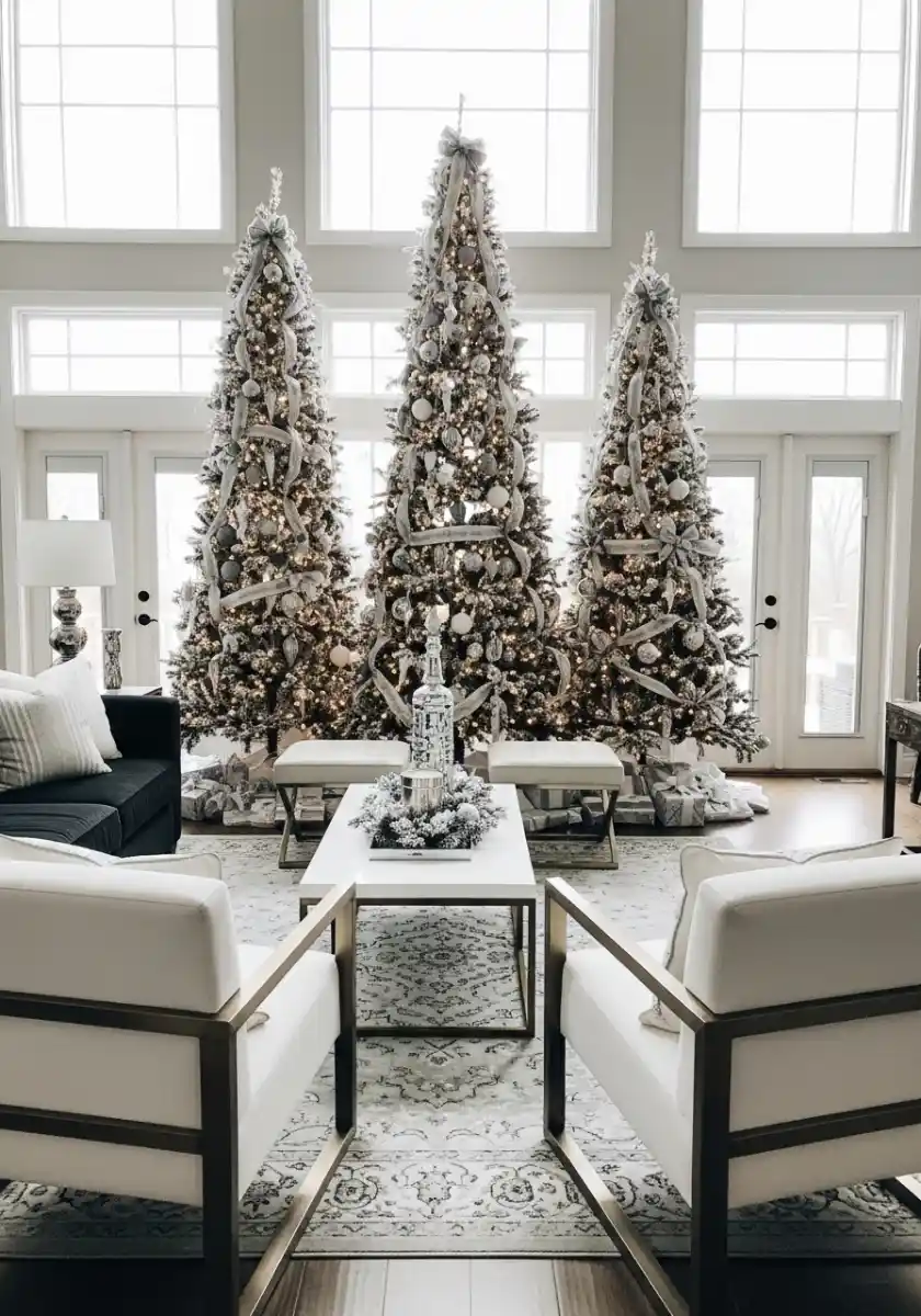 Silver Ribbon Trio Of Trees In A Bright Great Room