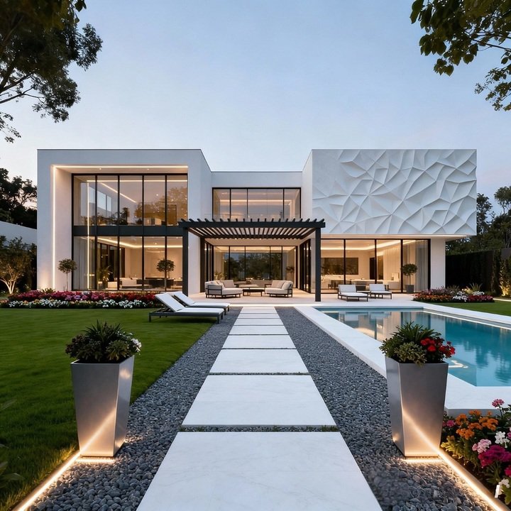 One hack for making this look even better is to install low-profile lighting along the edges of the pavers. The glow at night would be incredible and add another layer of sophistication without any extra clutter. This setup is all about sharp edges and minimalist landscaping, so if you're into something low-maintenance, this is a perfect choice.