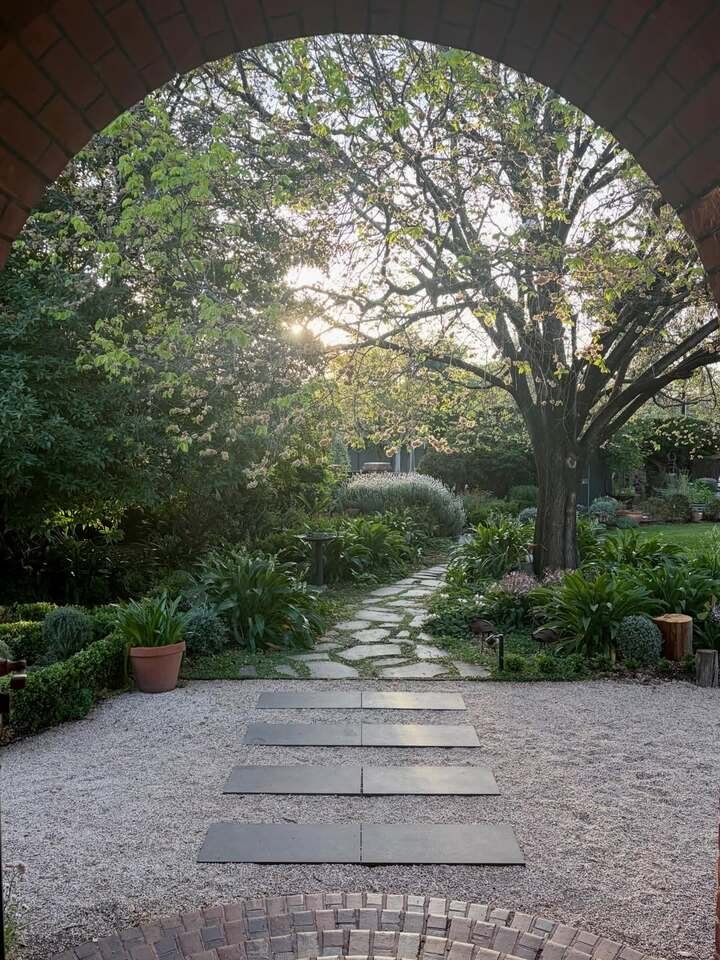What makes this work so well is the balance between the soft gravel and the more structured pavers. It’s perfect for a well-manicured garden where you want to highlight the walkway but also keep the natural vibe of your outdoor space. The gravel helps with drainage while providing a gentle, tactile contrast to the solid pavers.