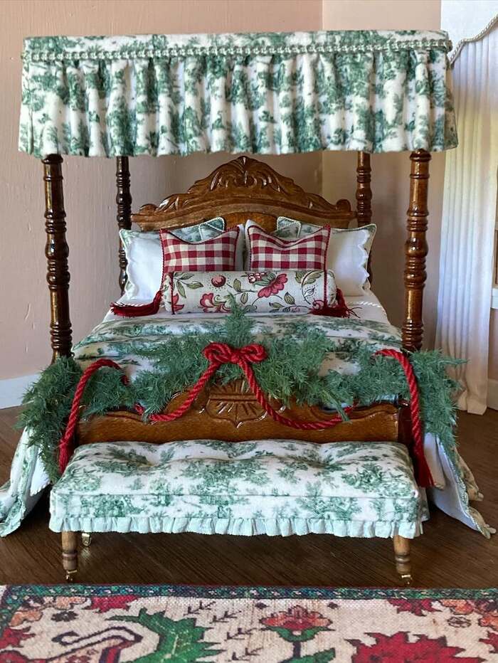Rules that saved me. When you use one heavy pattern, keep the rest plain. White sheets, solid shams, and maybe a single plaid accent pillow so your eye gets a spot to rest. Use tassel trim or ruffles sparingly so it stays grown up. For a quick DIY, cover a bench with toile yardage and a staple gun. If toile is too much, try a green and white Christmas bedroom with a smaller botanical print and keep the canopy solid linen.