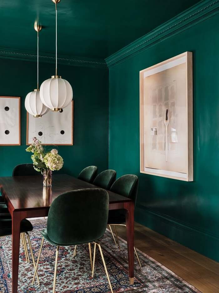 4) How do I keep a dark green dining room from feeling too gloomy?
