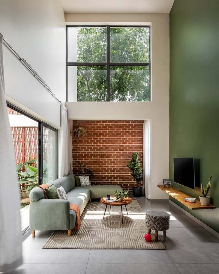 If you’ve ever walked into a space and felt that immediate sense of calm, then you know what I’m talking about when I say this grey flooring living room is a prime example of modern elegance. The grey floors work so well with the pastel green tufted sofa, creating this serene atmosphere that is both stylish and inviting. I just love how the soft green makes the grey pop without overwhelming it. The gold accents in the coffee table and side furniture give the room just the right amount of glam without being too flashy.
