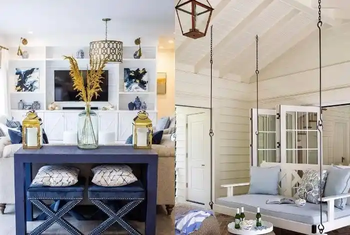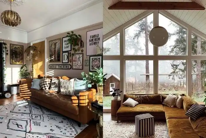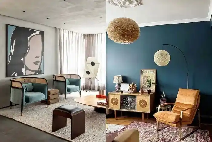 The best takeaway here is the idea of repeating organic shapes. If your living room with light floors feels too boxy, bring in curved objects. A bubble chair, a round coffee table, a wavy mirror. Those shapes soften the floor’s straight grout lines and make the room feel warm instead of flat.