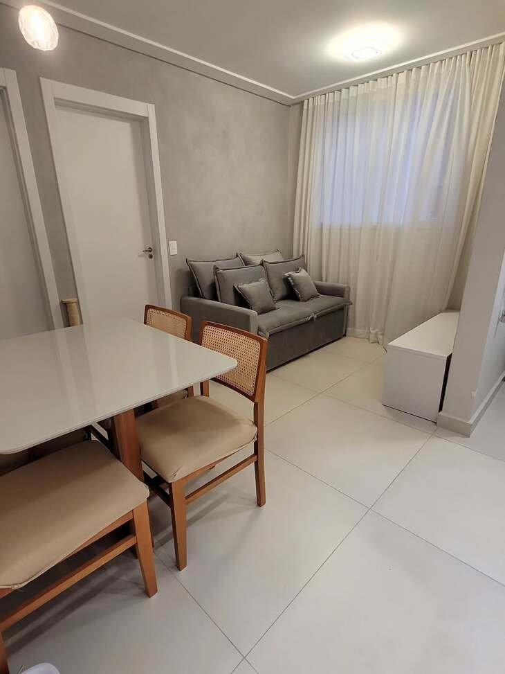 The ninth room feels like it belongs in a starter apartment, which makes my heart happy. It is a narrow space, with a small gray sofa at one end and a compact dining table at the other. The pale tile floor keeps everything bright so it does not feel cramped. This is a realistic light flooring living room situation.