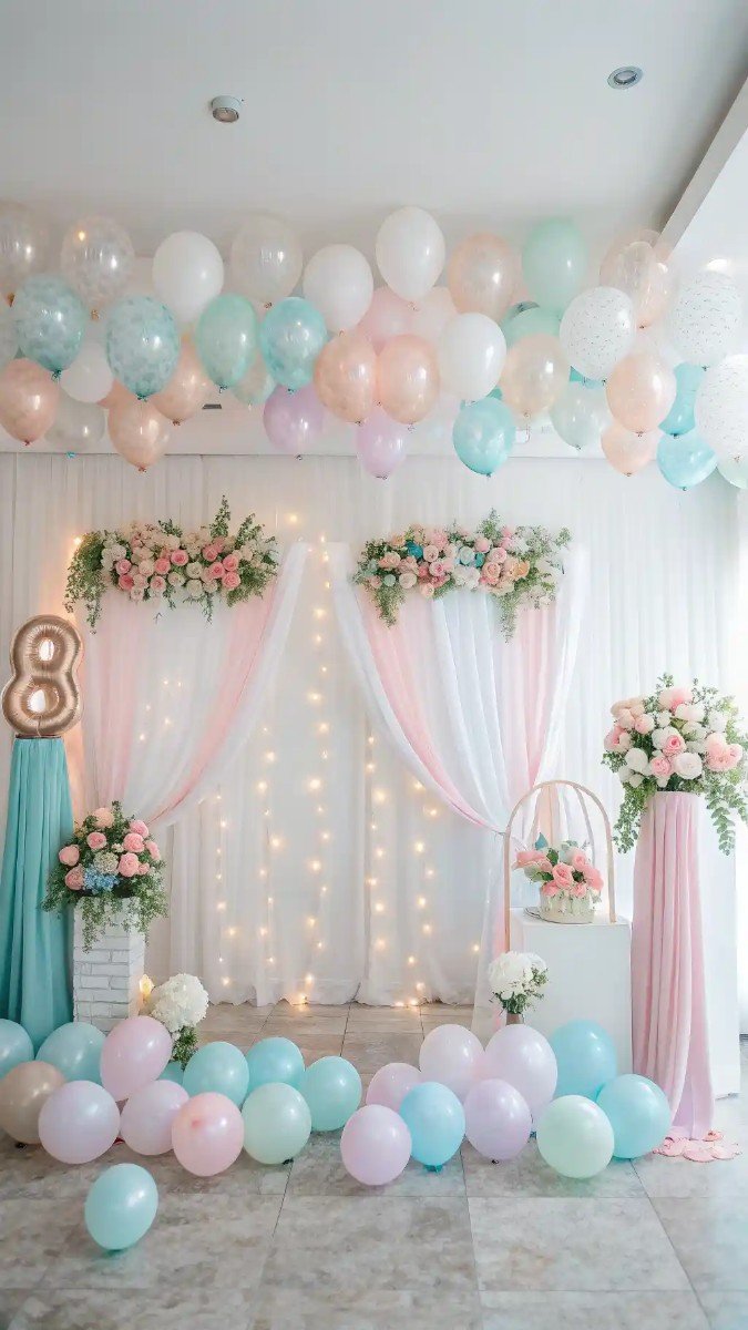 I believe that effective living room birthday decor leverages soft lighting and celebratory elements. The balloons, in a delicate pastel palette, add a touch of whimsy without overwhelming the space. This approach ensures a sophisticated yet celebratory ambiance.
