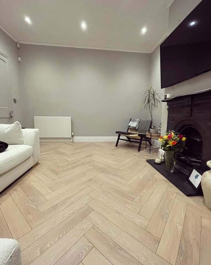 I find that herringbone wood floors are especially beautiful in larger living rooms, where the pattern can be showcased to its fullest. They work wonderfully with both modern and vintage furniture, creating an eclectic yet cohesive look. Whether you're using light oak for a subtle effect or dark walnut for a bolder statement, herringbone floors can easily become the focal point of any room.