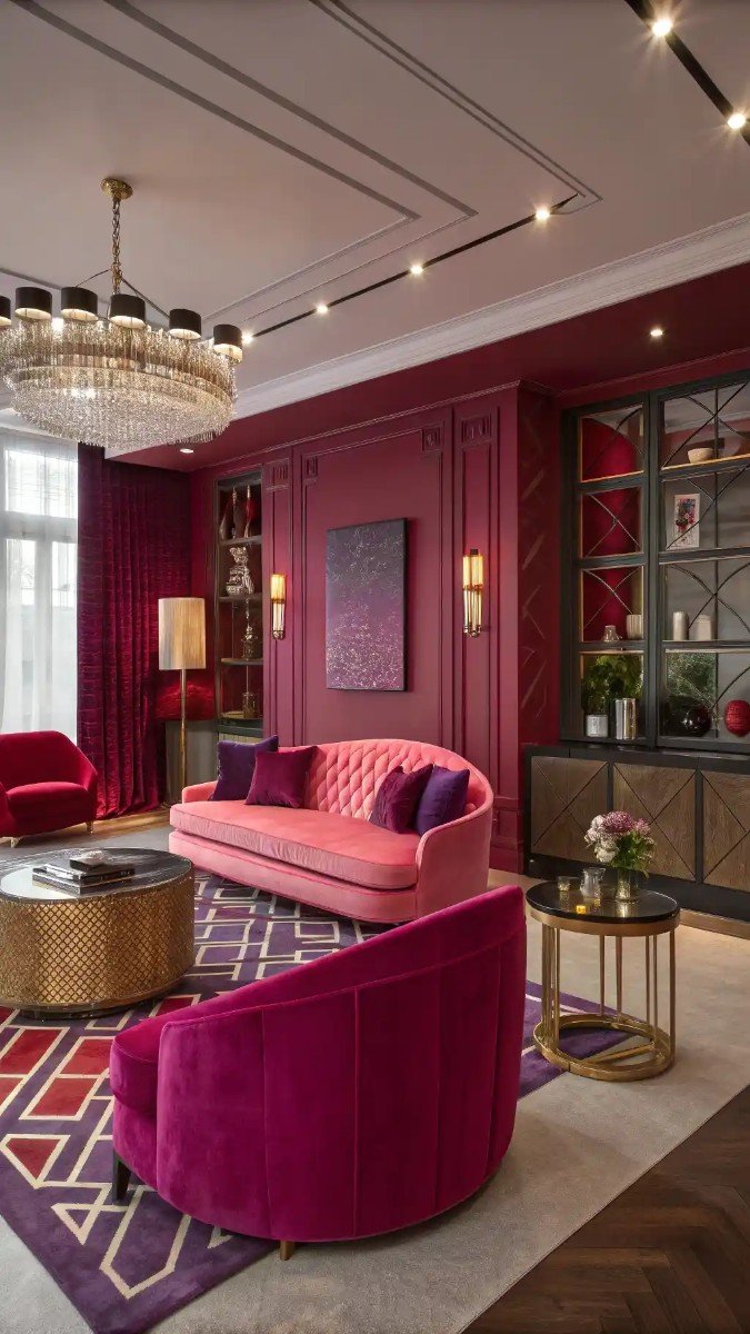 Crafting a Harmonized Pink, Purple, and Red Living Space