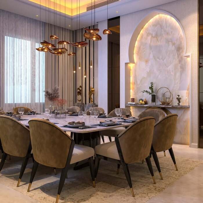 Don’t shy away from classic materials like marble, wood, and glass when designing your dining space. They might be traditional, but when combined well, they speak volumes about your style and your sense of timeless luxury.