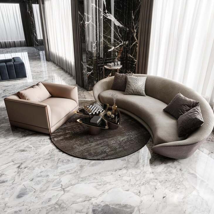 In living rooms, bold-veined marble can act as the primary décor element. You can keep furniture simple to allow the flooring to shine. Alternatively, designers may highlight the veining by pairing it with complementary colors and textures.
