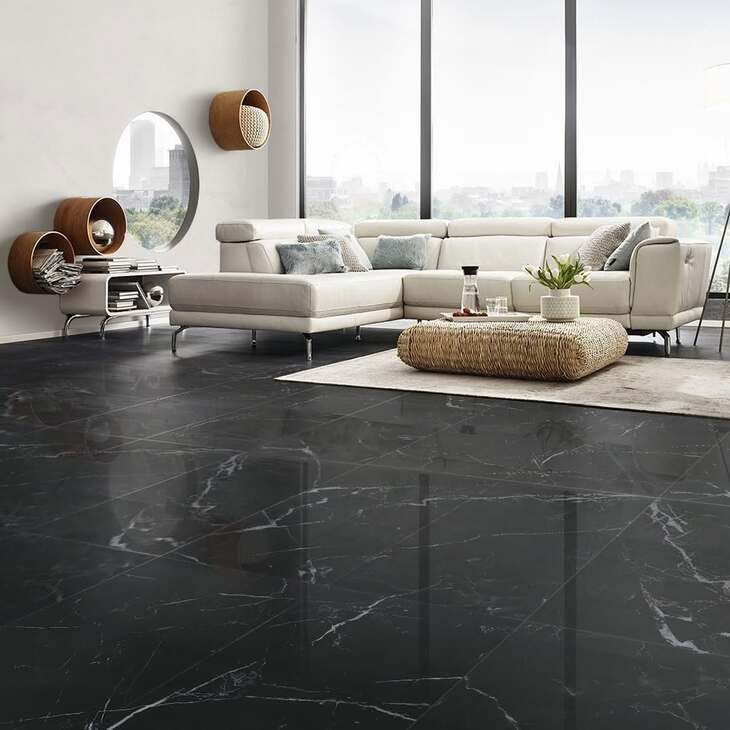 Black marble floors work well with gold accents, plush furniture, and contemporary lighting fixtures. This color option is perfect for luxurious living rooms or modern penthouse aesthetics. It’s a statement choice that exudes confidence and style.