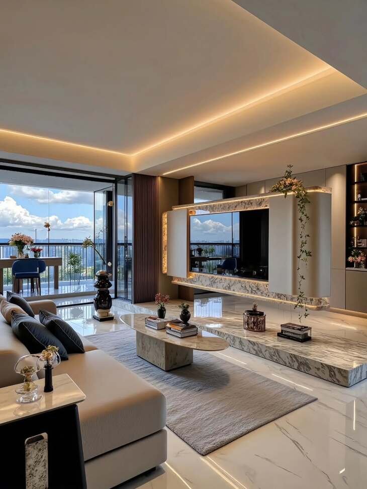 Marble has been used for centuries in palaces, temples, and luxurious estates. Its natural patterns and elegant touch make it a favorite among designers and architects. The living room, being a central gathering area, deserves a material that both impresses and performs.