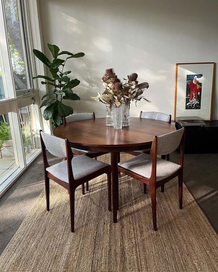 Add felt pads to every chair leg and your room gets quiet in the best way. It’s a small thing, but these details are the backbone of good mid-century dining rooms.
