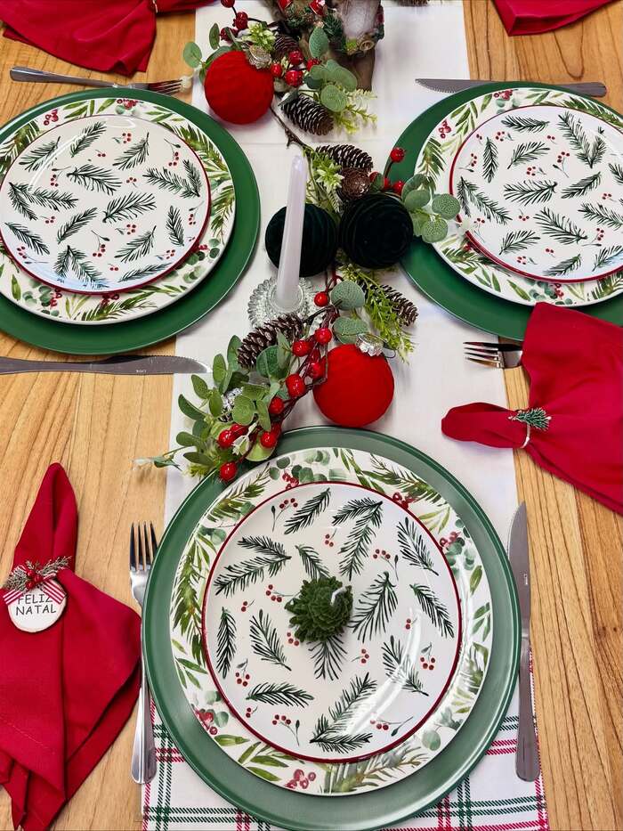 To copy it, stack three plates at most and keep one pattern. I used the botanical plate as the star, a plain salad plate, then the green charger. Fold napkins simply and anchor with a sprig or a ring. If you love a bolder look, swap the runner for plaid and keep the centerpiece lean. That balance keeps your simple Christmas decor from going busy in five seconds. Guests can actually set down their water glasses without playing ornament Tetris.
