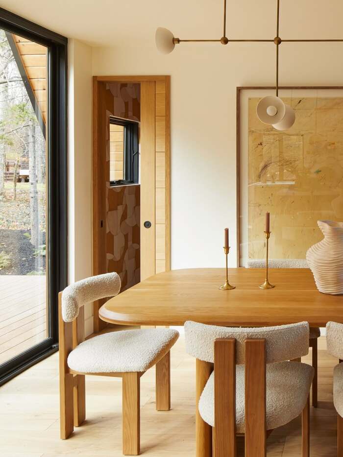 Think rounded corners on the table, cylinder pottery, pebble shaped hardware. These tiny shape choices are the secret to the most believable organic modern dining room ideas.