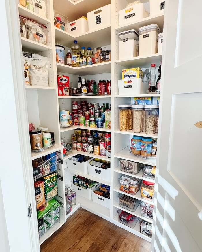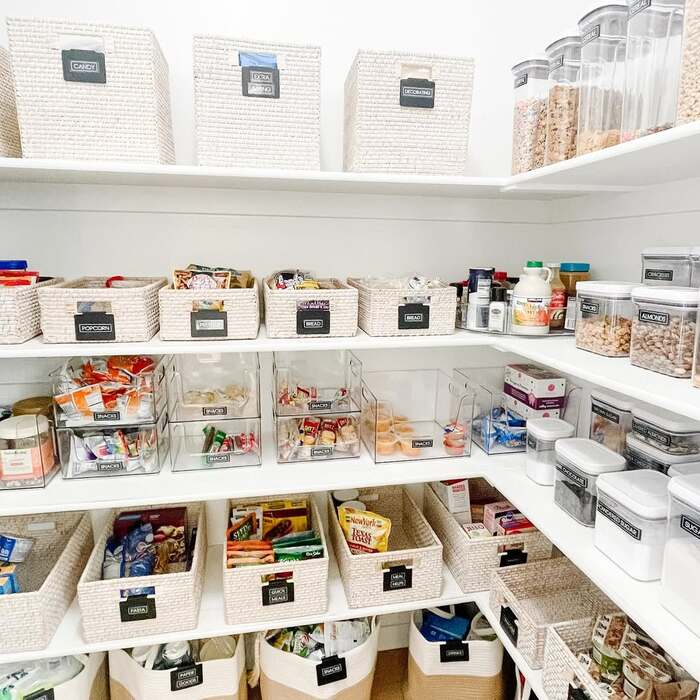 If your pantry is deep, try handled bins. You can yank the whole bin out like a drawer, pick what you need, and slide it back in. It’s weirdly satisfying.